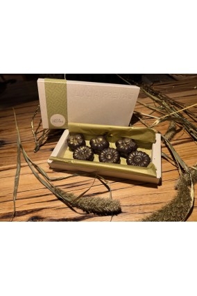 El surtido en caja de seis unidades incluye nuestras dos versiones: flor de cacao y café, de carácter intenso y tostado, y cuatro especias, cálida y aromática.
